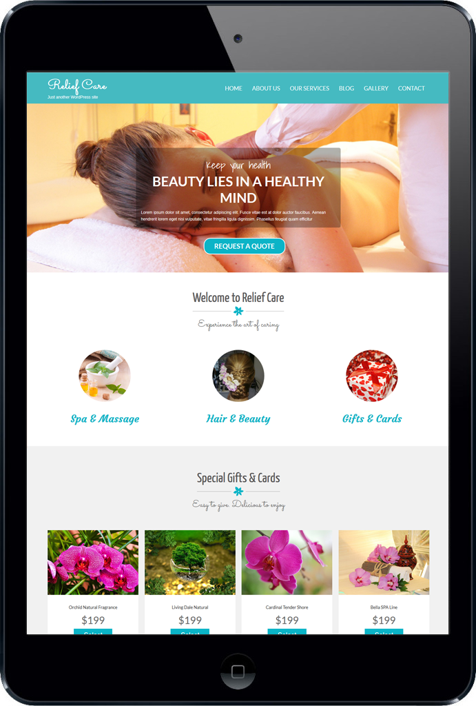 Es un theme pensado para negocios enfocados en salud tipo medicina, centros de relajación, masajes, peluquerías o sitios comerciales similares.