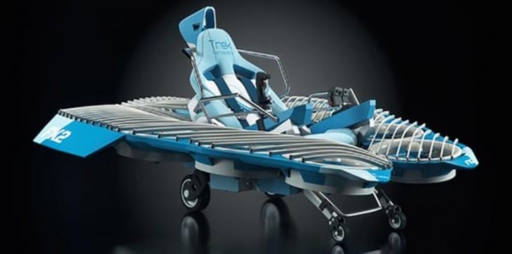 Y a continuación os queremos enseñar algunos de los modelos más sorprendentes. El primer prototipo es El Flykart 2, de Trek Aerospace apuesta por una posición más reclinada en el asiento, con el piloto en el centro, rodeado por 10 rotores, como un dron gigante.