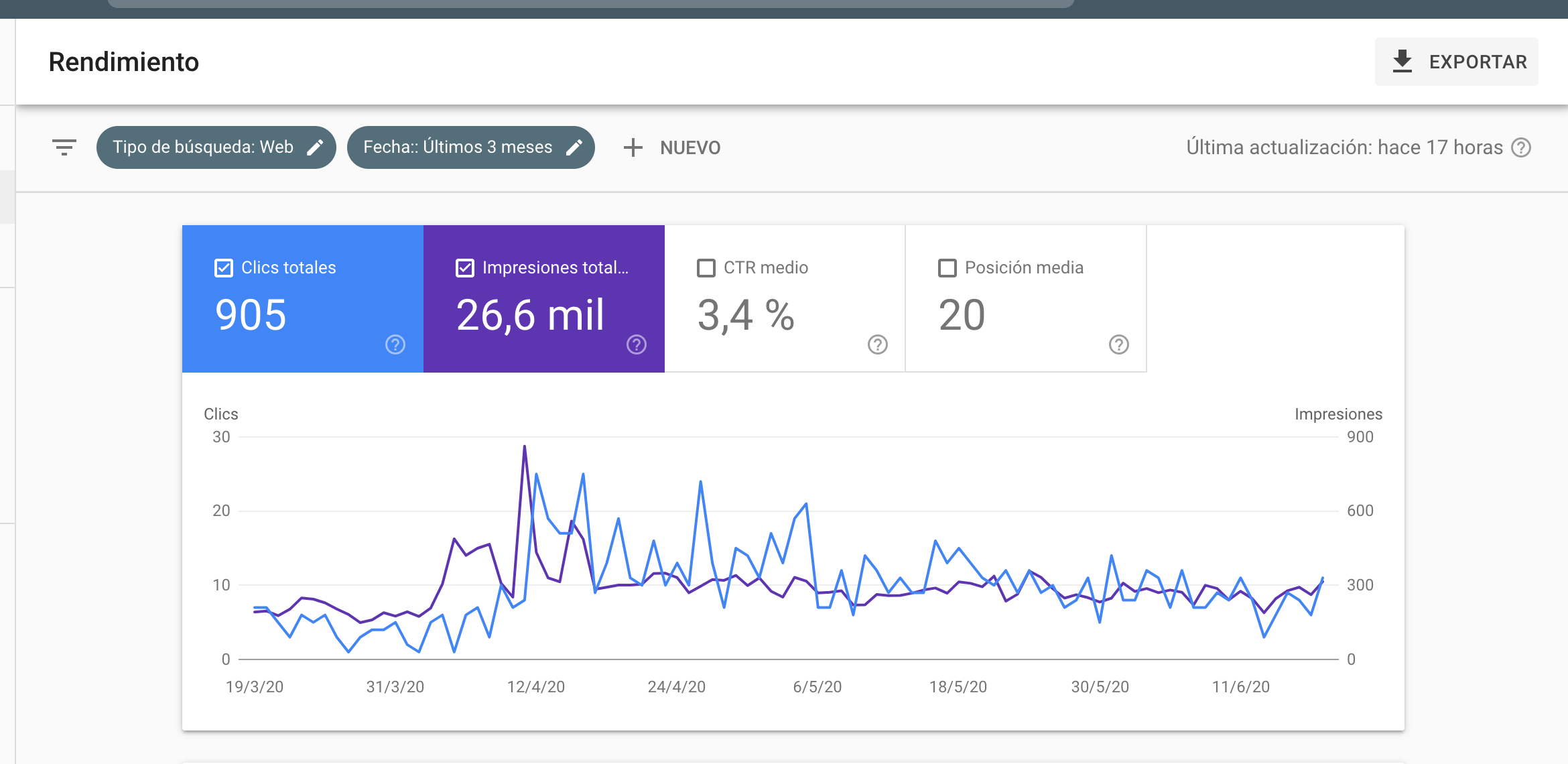 2. Tráfico de búsqueda: Permite saber para qué búsquedas aparece nuestra web en los resultados de búsqueda, los resultados que nos reporta y los enlaces que tiene indexados.